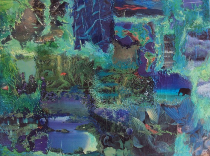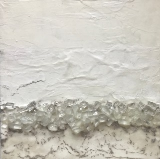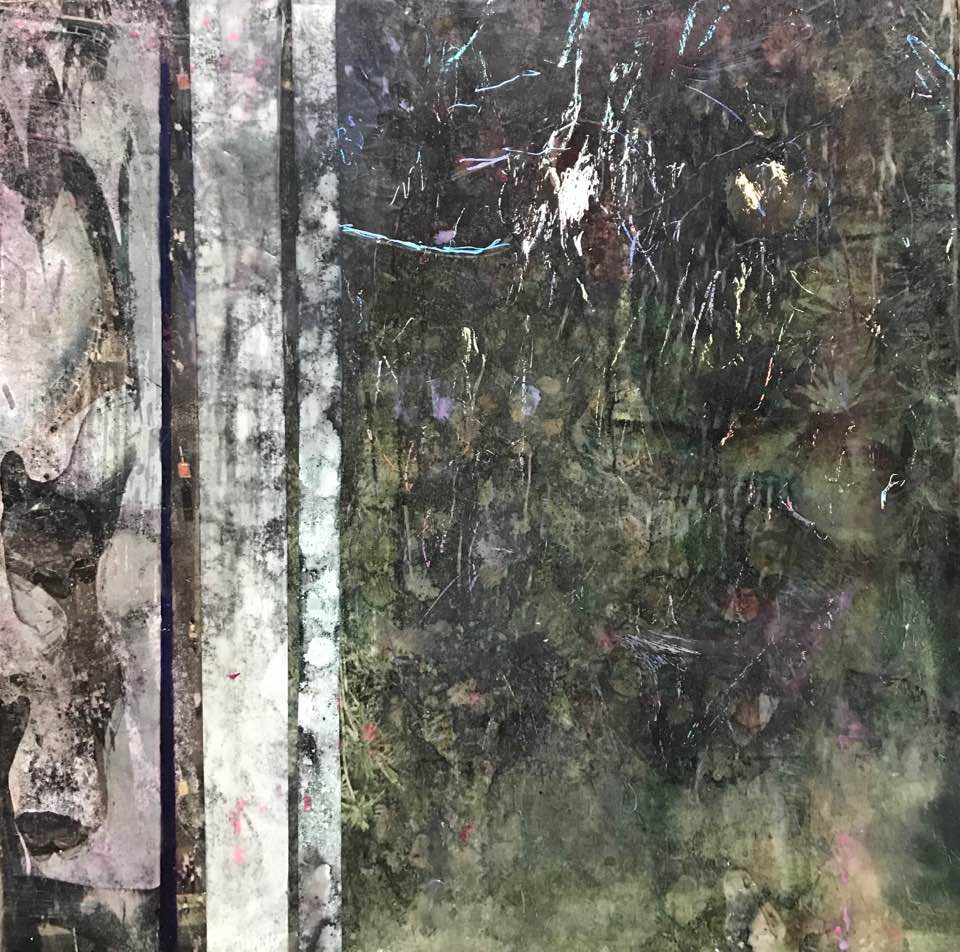 Forgotten Realms, 8×8 Encaustic collage 2017